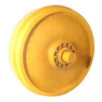 The track idler is a key component of the crawler undercarriage, essential for the proper functioning of construction machinery such as excavators, bulldozers, or loaders. Its main task is to maintain the appropriate tension of the track, which directly affects the stability and traction of the machine. A properly tensioned track ensures better traction on various terrains, translating into safe and efficient operation of the machine. The track idler also contributes to reducing the wear of undercarriage components, as a track that is too loose can lead to slipping and accelerated wear of components such as sprockets or carrier rollers. Additionally, a properly functioning track idler improves operator comfort by minimizing vibrations and noise during machine operation, which enhances working conditions.